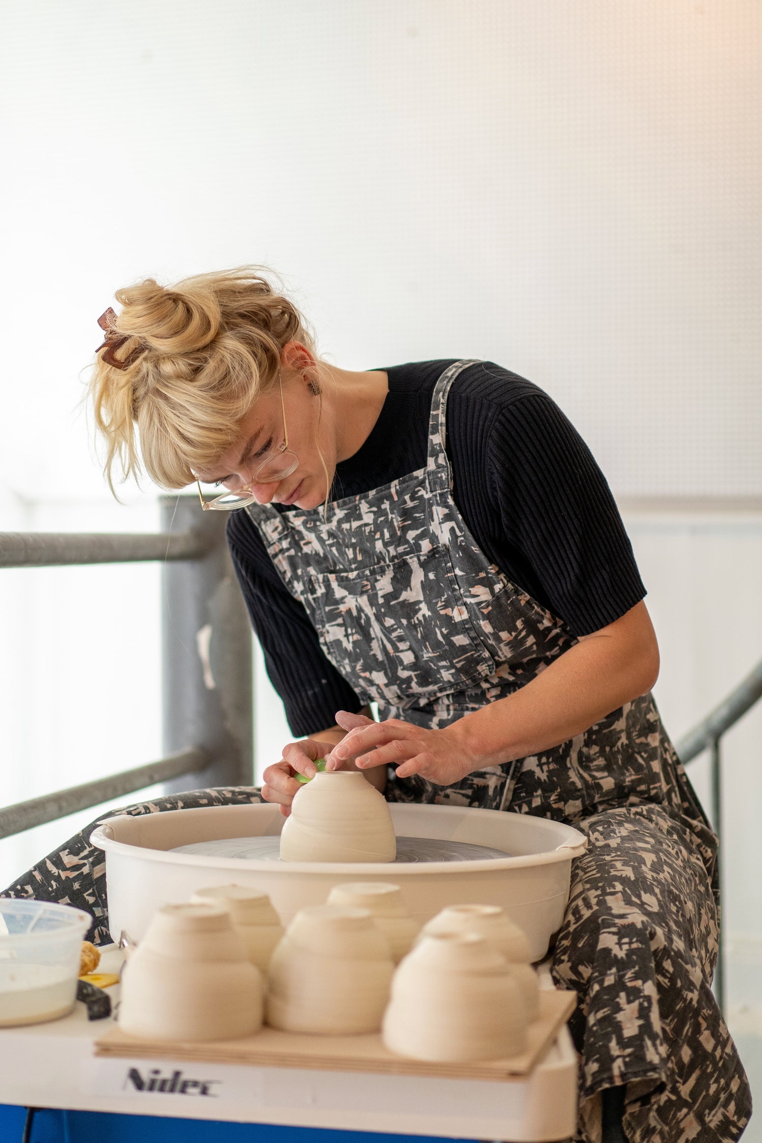 Hun er særligt optaget af en brændingsteknik kaldet brændefyring. Det foregår i store, meterlange ovne, hvor træ bruges til at opnå de høje temperaturer, der skal til for at brænde keramik. Samspillet mellem asken og flammerne, der bevæger sig gennem ovnen, skaber unikke aftegninger på overfladen af potterne. Det er en dybt involverende proces, hvor man er tæt på hvert eneste skridt, mens temperaturen langsomt øges og flammerne skifter farve.