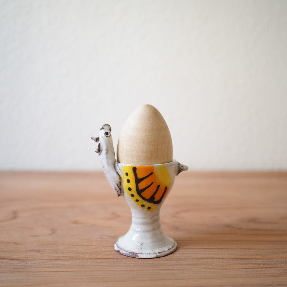 Drejet, modelleret og dekoreret æggebægere af Han Nguyen. Høner af alle slags.