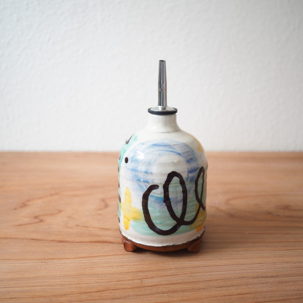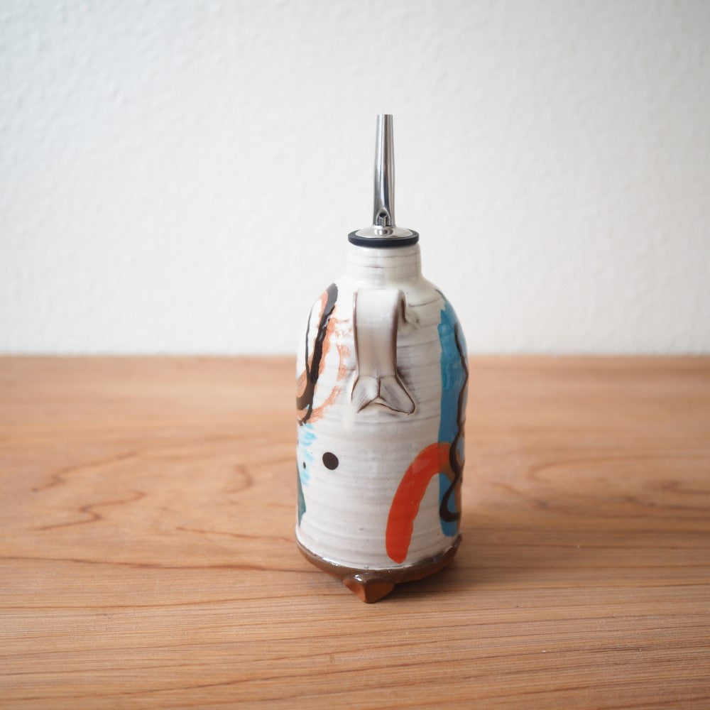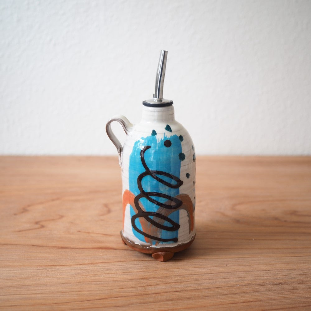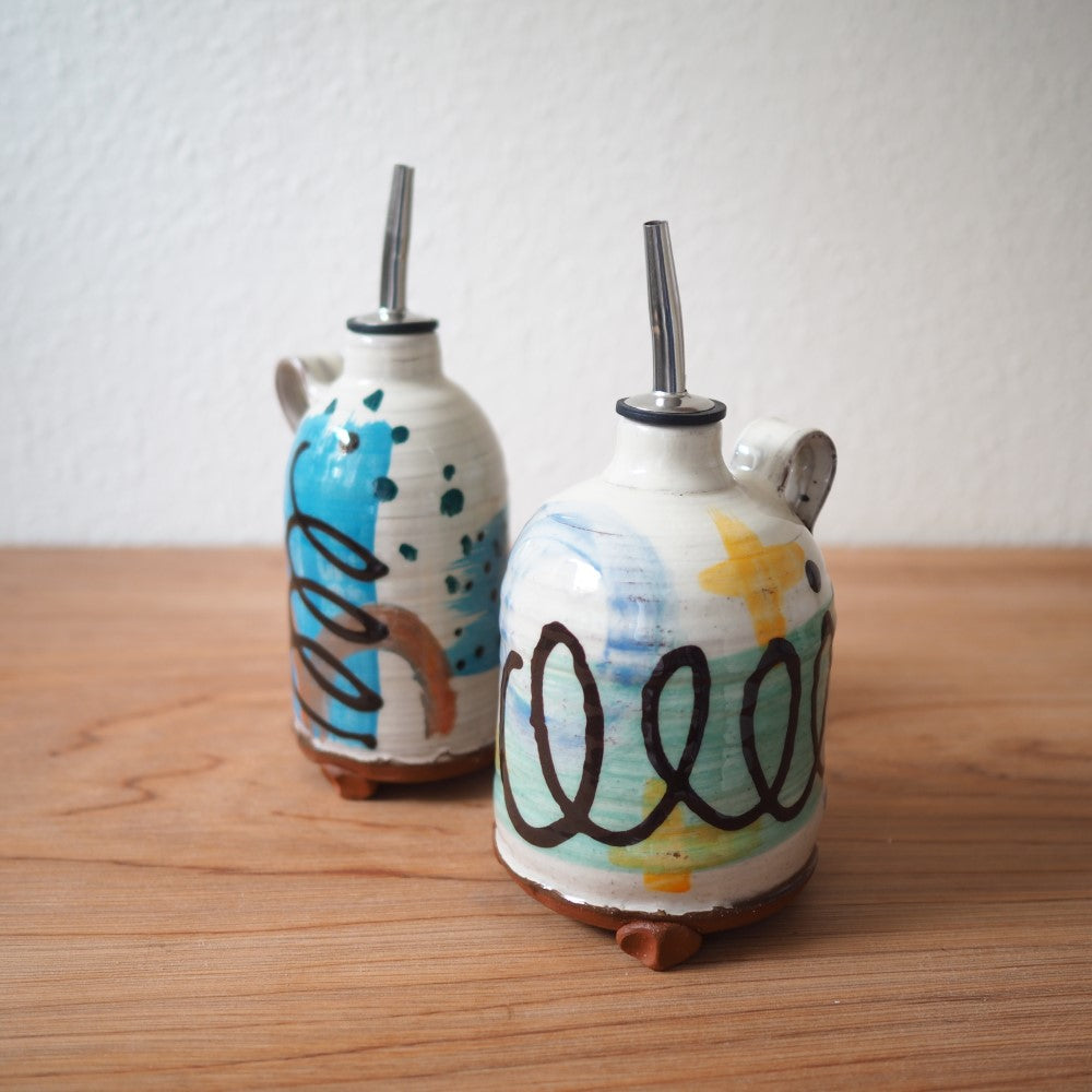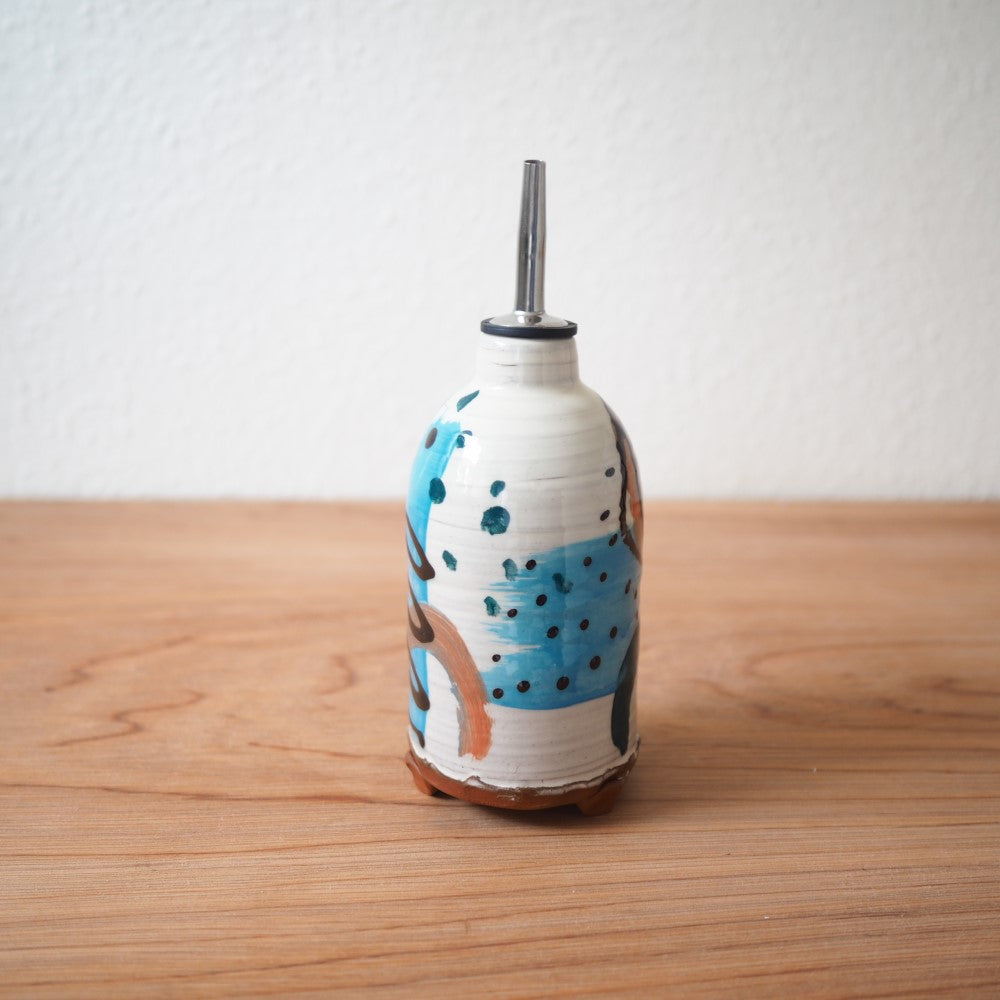 Drejet og dekoreret med begitning af Han Nguyen. Der er variationer i størrelse mellem hver oliekande, men de kan allesammen indeholde ca 500ml. Der følger en metal/silikone tud med.