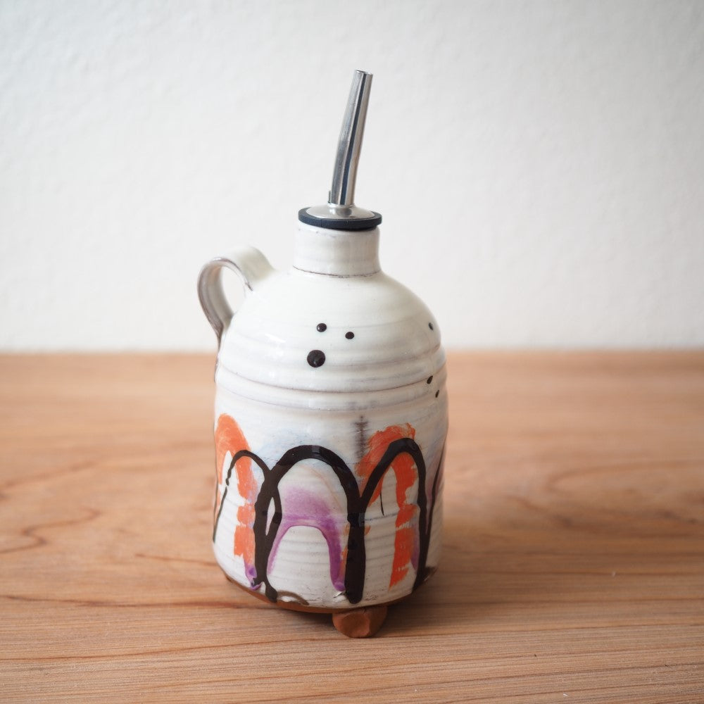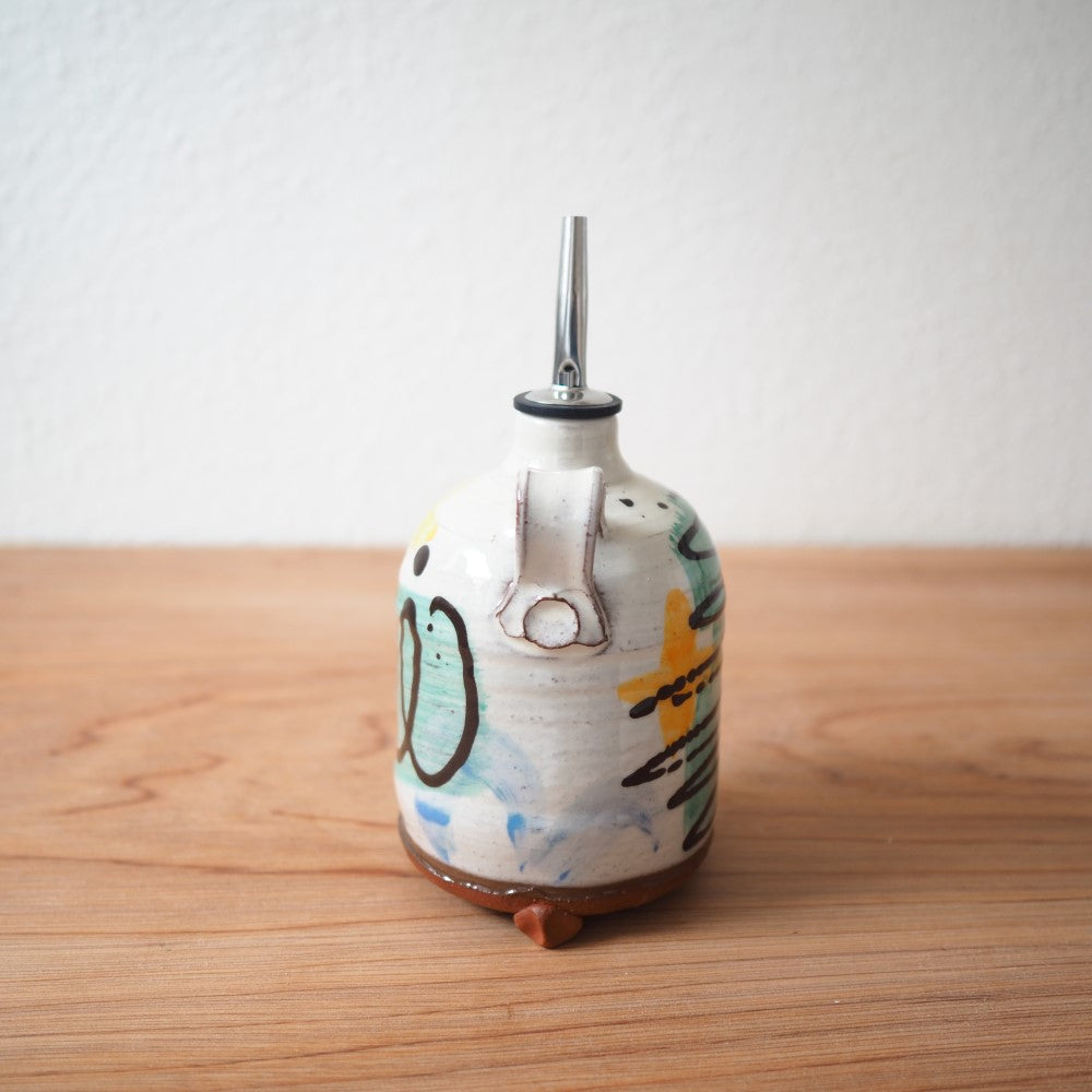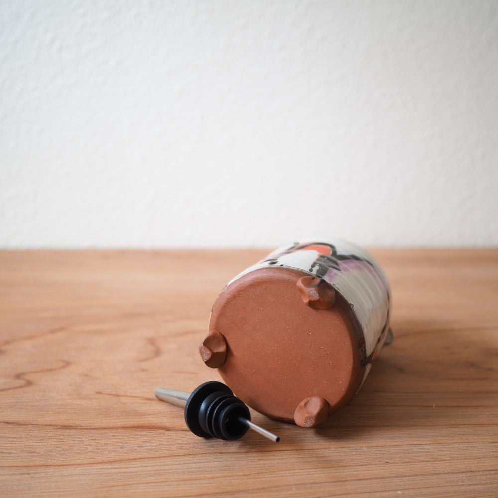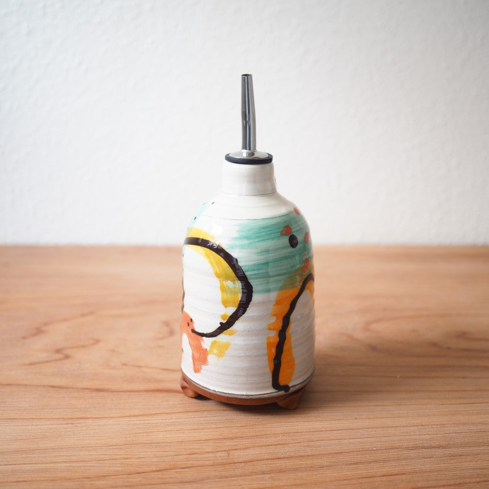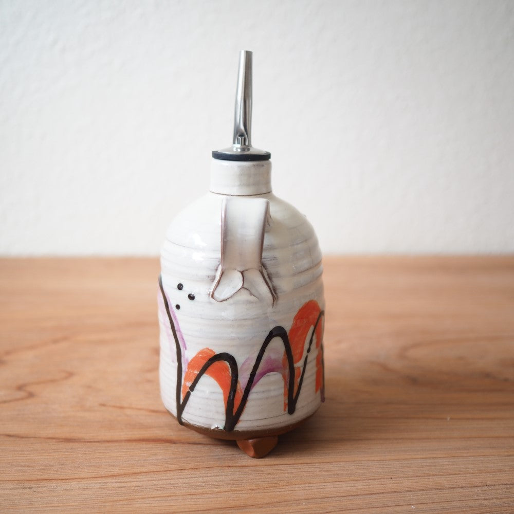 Drejet og dekoreret med begitning af Han Nguyen. Der er variationer i størrelse mellem hver oliekande, men de kan allesammen indeholde ca 500ml. Der følger en metal/silikone tud med.