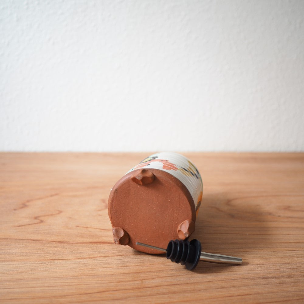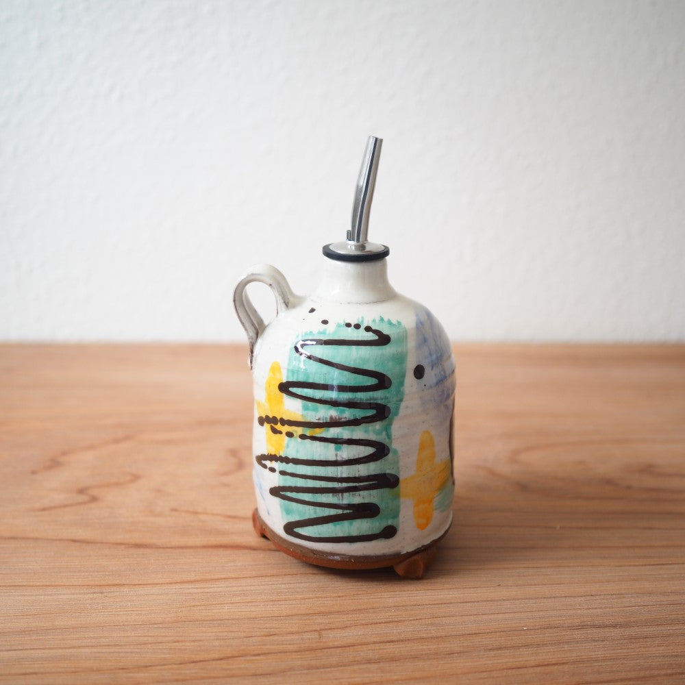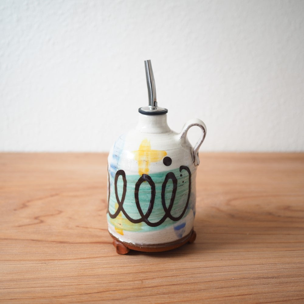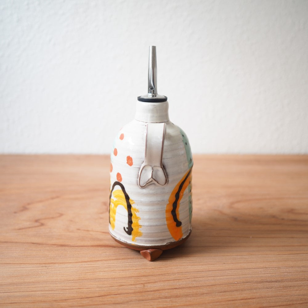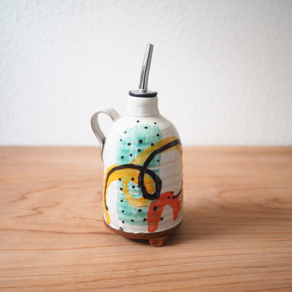 Drejet og dekoreret med begitning af Han Nguyen. Der er variationer i størrelse mellem hver oliekande, men de kan allesammen indeholde ca 500ml. Der følger en metal/silikone tud med.